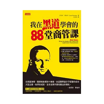 書名:我在黑道學會的88堂商管課 原文名稱:Mob Rules: What the Mafia Can Teach the Legitimate Businessman 語言:繁體中文 ISBN:9789862296318 頁數:344 出版社:三采 作者:路易斯.費倫特 譯者:吳書榆 出版日期:2012/03/03 類別:商業理財 |