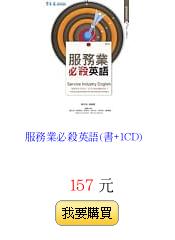 服務業必殺英語(書+1CD)購買網址:http://www.books.com.tw/exep/assp.php/87926/products/0010439631?utm_source=87926&utm_medium=ap-books&utm_content=recommend&utm_campaign=ap-201706