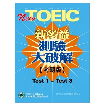 New TOEIC新多益測驗大破解【考題版】Test 1-Test 3(1MP3)購買網址:http://www.books.com.tw/exep/assp.php/87926/products/0010567261?utm_source=87926&utm_medium=ap-books&utm_content=recommend&utm_campaign=ap-201706