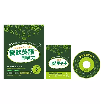 餐飲英語即戰力:30大情境主題‧常用英語句型x對話(附真人發音CD、口袋單字本)購買網址:http://www.books.com.tw/exep/assp.php/87926/products/0010719079?utm_source=87926&utm_medium=ap-books&utm_content=recommend&utm_campaign=ap-201706